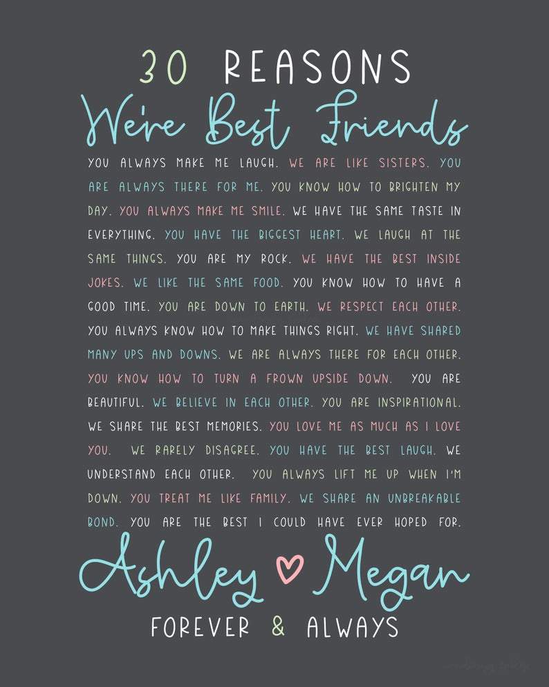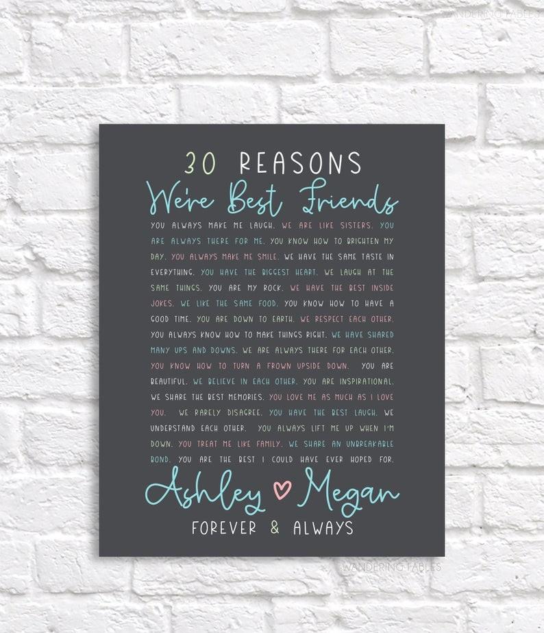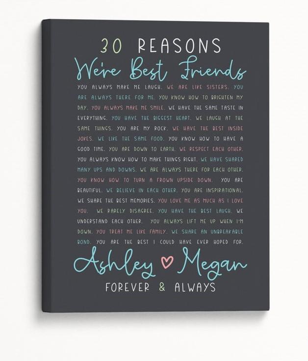30 Reasons We're Best Friends Portrait Poster & Canvas Sweet Home Decor Wall Art Workplace Office Decor Wall Closing Gift For Friendship Gift For Birthday