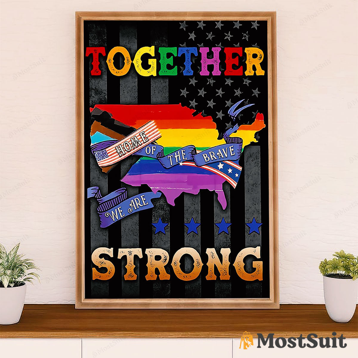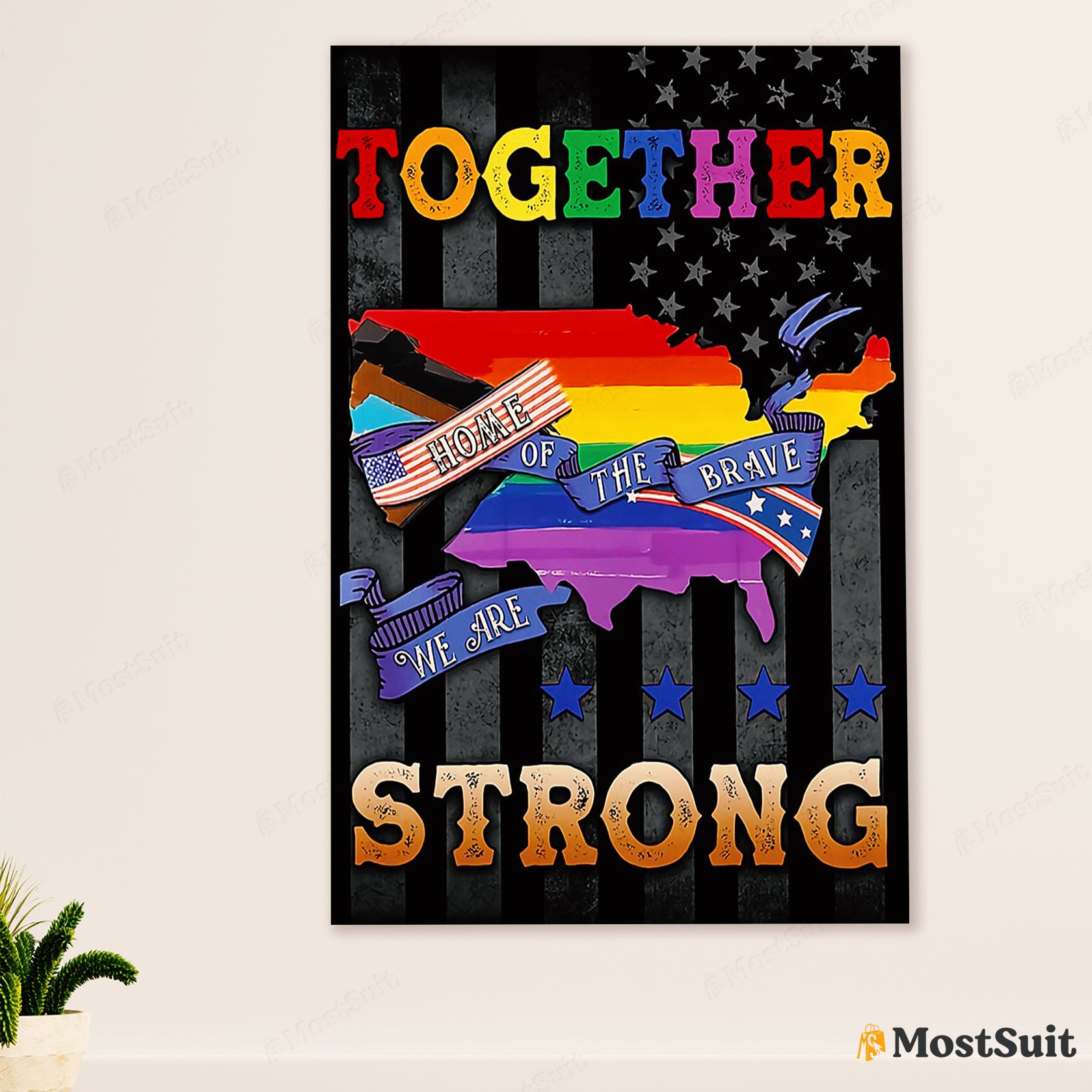 LGBT Gay Pride Month Poster Room Wall Art | American Gay Together We Are Strong