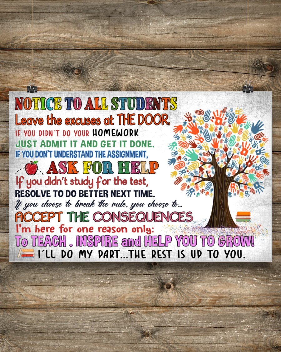 Notice To All Students Landscape Poster & Canvas Gift For Teacher Classroom Decor Home Decor Wall Art Back To School