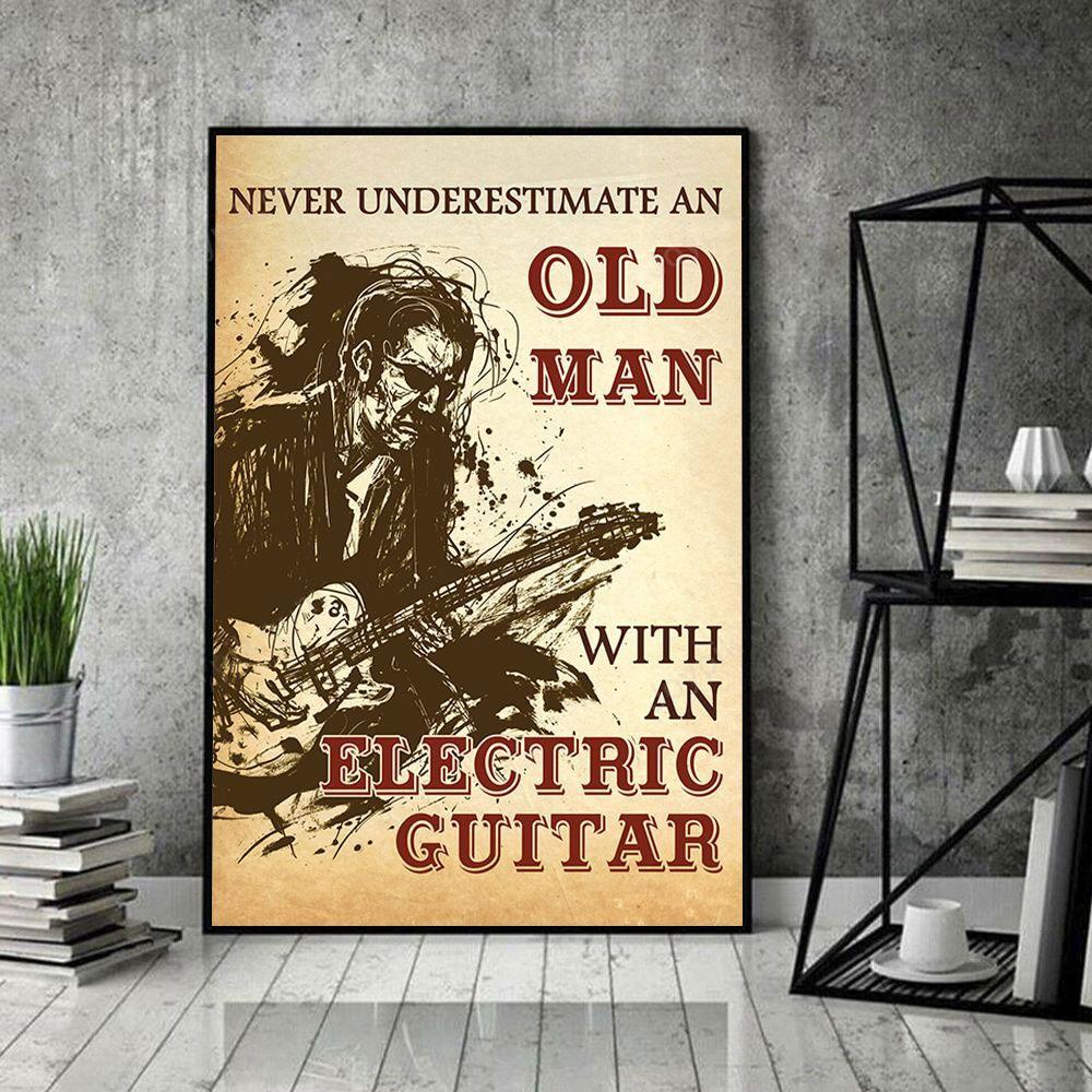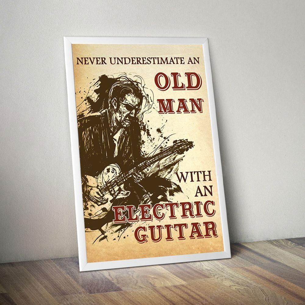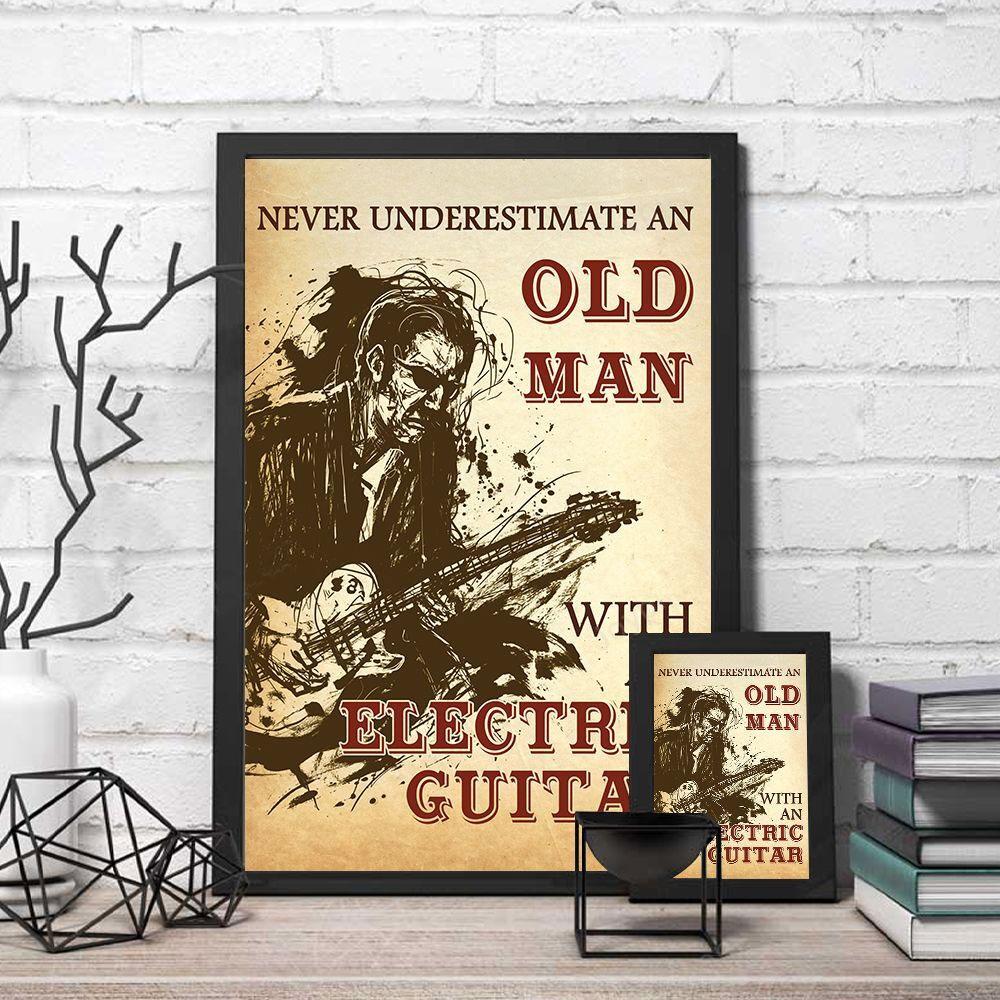 Poster Canvas Never Underestimate An Old Man With An Electric Guitar Poster, Grandpa Gift Decor Home Decor Wall Art